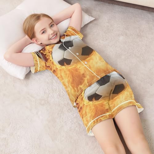 ALAZA Fire Soccer Stylish Football Satin Pajamas Set Short Sleeve Button Down Sleepwear Summer Pjs 2 Piece 2