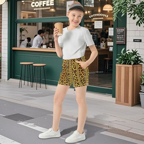 Leopard Print Girls Athletic Lounge Shorts with Gold Border Cute Summer Pajama Sleep Shorts for Teens Kids, X-Small 4