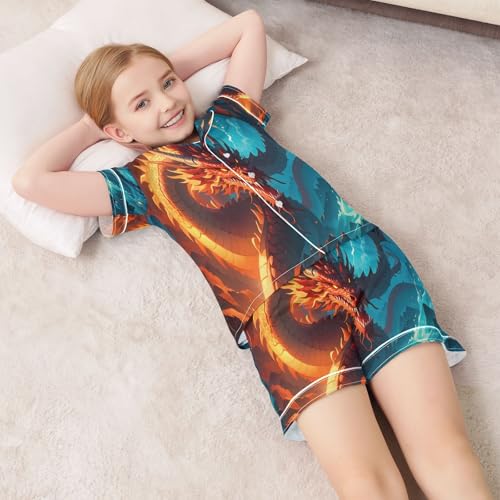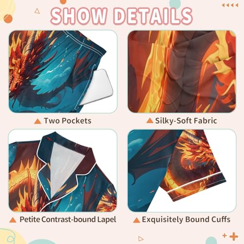 More information about ALAZA Dragon Water Blue Animal Satin Pajamas Set Short Sleeve Button Down Sleepwear Summer Pjs 2 Piece