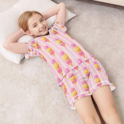 ALAZA Ice Cream Bow Striped Satin Pajamas Set Short Sleeve Button Down Sleepwear Summer Pjs 2 Piece 4