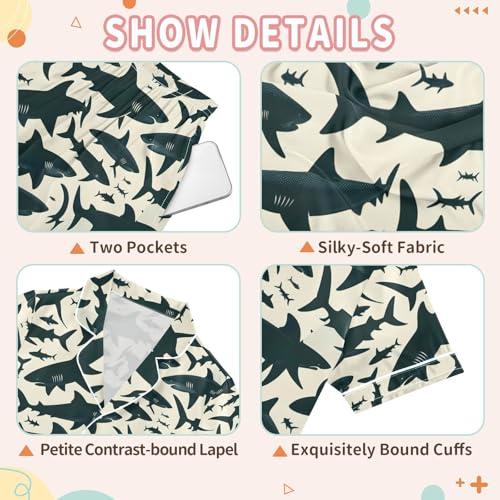 ALAZA Funny Fish Shark Pajamas Satin Pajama Set Short Sleeve Button Down Sleepwear 3