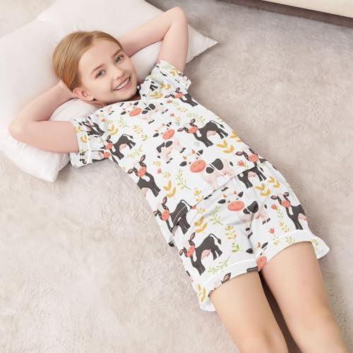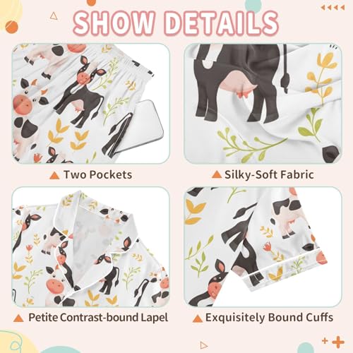 ALAZA Cute Cow Flower Pajamas Satin Pajama Set Short Sleeve Button Down Sleepwear 6