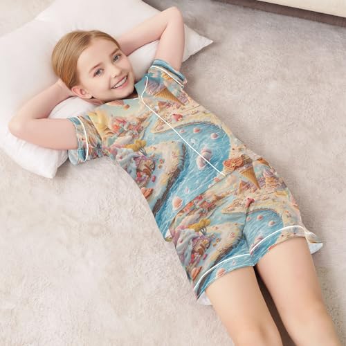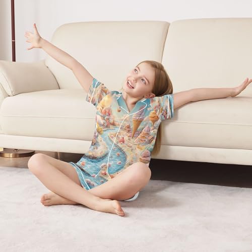 ALAZA Balloon Ice Cream Satin Pajamas Set Short Sleeve Button Down Sleepwear Summer Pjs 2 Piece 1