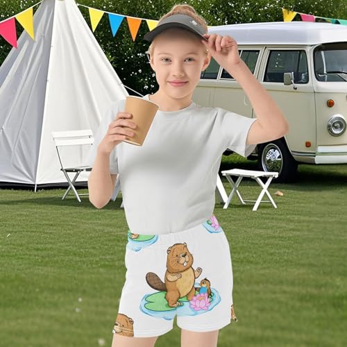 Girls Lounge Shorts Cute Cartoon Beaver Bird Lily Print Athletic Summer Pajama Shorts Youth Kids Clothes, X-Small 4