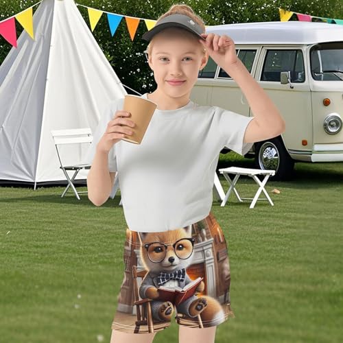Girls Lounge Shorts Cute Smart Fox Book Lover Print Comfy Pajama Activewear for Teens Kids Summer Clothes, X-Small 6