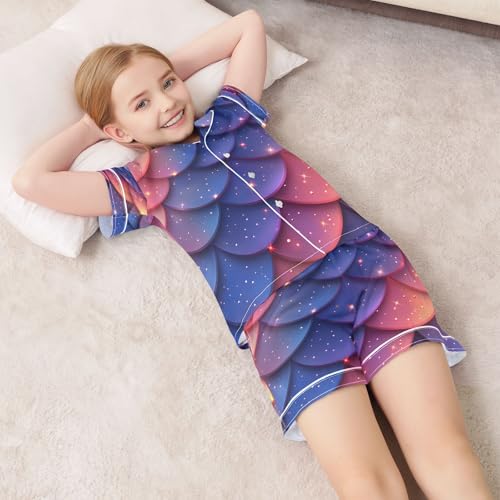 ALAZA Cute Color Mermaid Scale Satin Pajamas Set Short Sleeve Button Down Sleepwear Summer Pjs 2 Piece 7