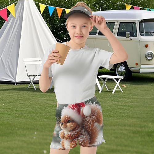 Girls Shorts Cute Squirrel Christmas Hat Print Athletic Pajama Sleep Shorts Activewear Personalized Gifts, X-Small 5