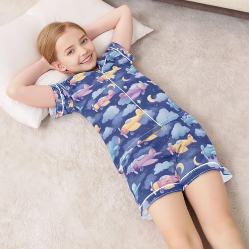 senya Dreamliner Aircraft A Satin Summer Pajama Sets Silk Short Sleeve Button Down Sleepwear 3