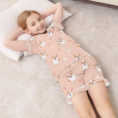 senya Corgi Dog Paw Prints 1 Satin Summer Pajama Sets Silk Short Sleeve Button Down Sleepwear 1
