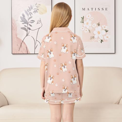 senya Corgi Dog Paw Prints 1 Satin Summer Pajama Sets Silk Short Sleeve Button Down Sleepwear 2