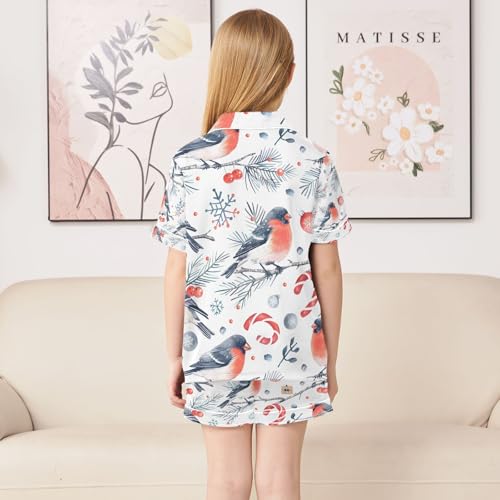 senya Red Bird and Tree Satin Summer Pajama Sets Silk Short Sleeve Button Down Sleepwear 6