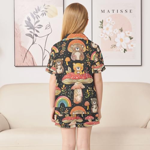 senya Mushroom Bear Rainbow Satin Summer Pajama Sets Silk Short Sleeve Button Down Sleepwear 1