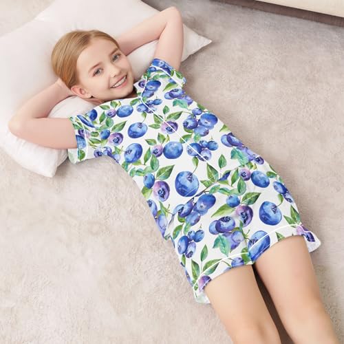 Blueberry Pattern Summer Satin Pajama Set, Cute Button-Down Sleepwear Pj Set for Sleep Wears 5