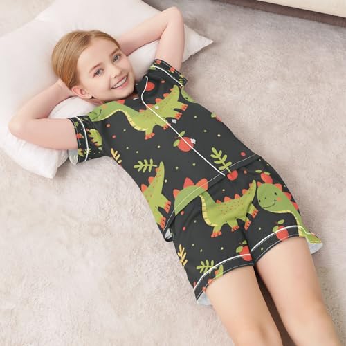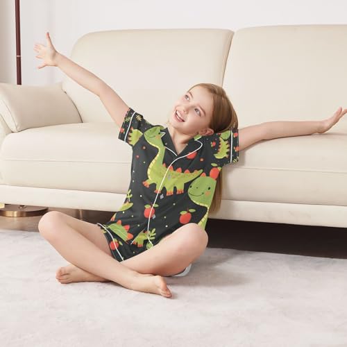 senya Dinosaur Fruit Satin Summer Pajama Sets Silk Short Sleeve Button Down Sleepwear 6