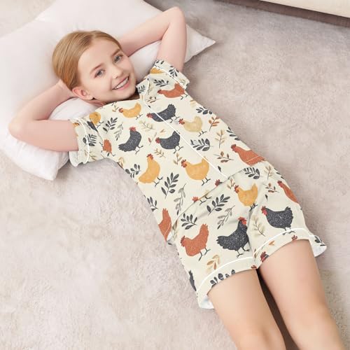 More information about Rooster Leaves Pattern Summer Satin Pajama Set, Cute Button-Down Sleepwear Pj Set for Sleep Wears