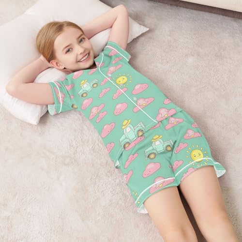 Cloud Car Style Summer Satin Pajama Set, Cute Button-Down Sleepwear Pj Set for Sleep Wears 2