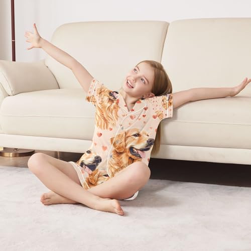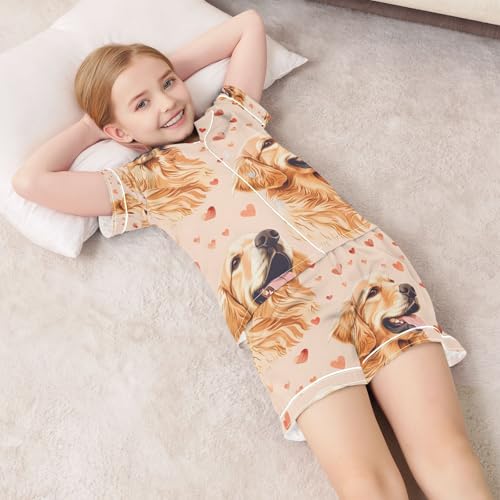 senya Golden Retriever Dog Hearts Satin Summer Pajama Sets Silk Short Sleeve Button Down Sleepwear 1