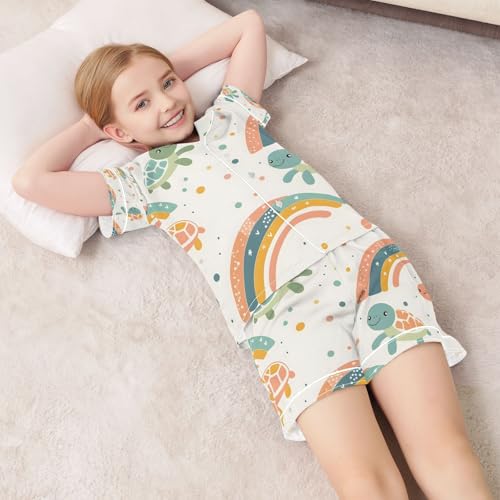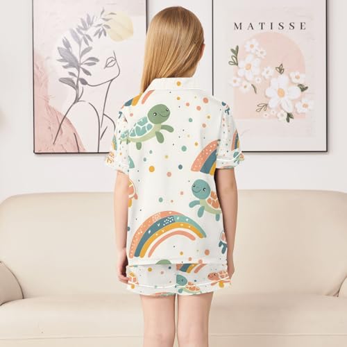 senya Turtle Rainbow Satin Summer Pajama Sets Silk Short Sleeve Button Down Sleepwear 6