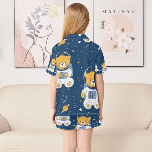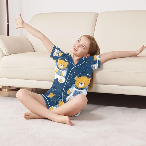 senya Bear Astronaut A Satin Summer Pajama Sets Silk Short Sleeve Button Down Sleepwear 3