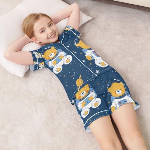 senya Bear Astronaut A Satin Summer Pajama Sets Silk Short Sleeve Button Down Sleepwear 2