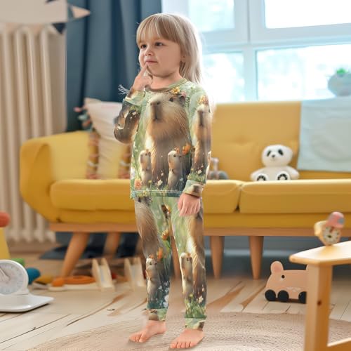 Pajama Sets Long Sleeve Three Cute Capybara Soft Comfy Sleepwear 2 Piece PJS 3-8T 2