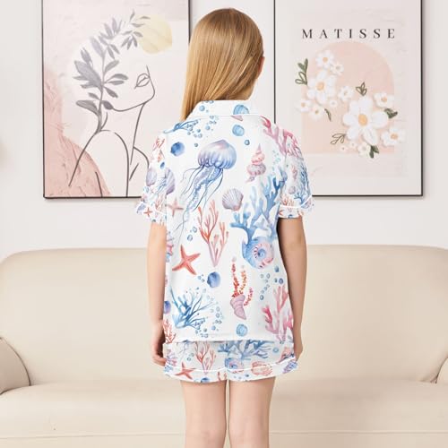 senya Jellyfish Seahorse Satin Summer Pajama Sets Silk Short Sleeve Button Down Sleepwear 6