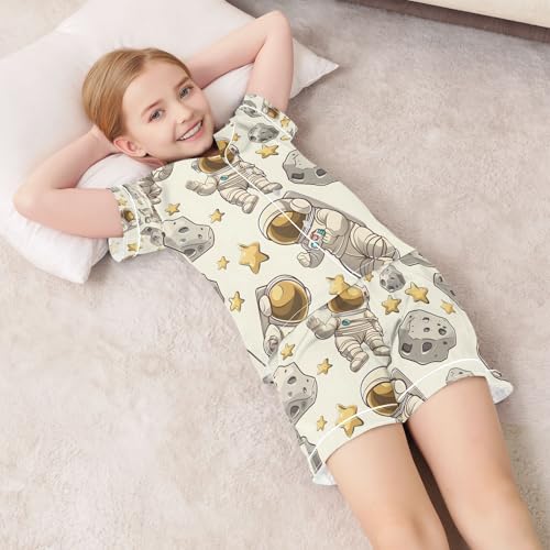 senya Cartoon Astronauts Stars Satin Summer Pajama Sets Silk Short Sleeve Button Down Sleepwear 2