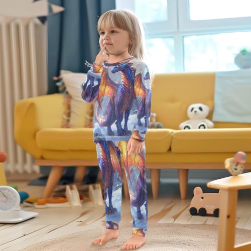 Pajama Sets Long Sleeve Dragon Standing in A Snowy Landscap Soft Comfy Sleepwear 2 Piece PJS 3-8T 2