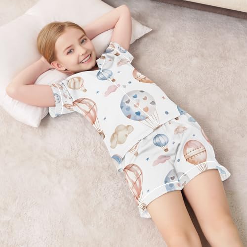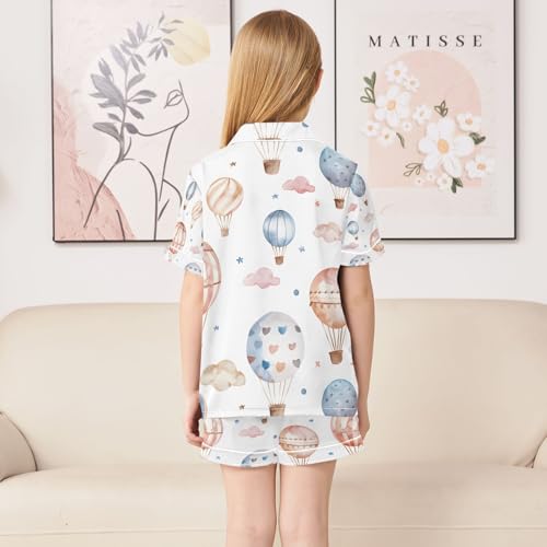 senya Air Balloons Satin Summer Pajama Sets Silk Short Sleeve Button Down Sleepwear 1
