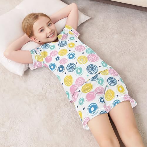 Colorful Cute Circle Pattern Summer Satin Pajama Set, Cute Button-Down Sleepwear Pj Set for Sleep Wears 6