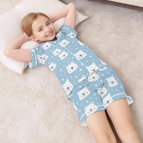 Light Blue Polar Bear Summer Satin Pajama Set, Cute Button-Down Sleepwear Pj Set for Sleep Wears 4