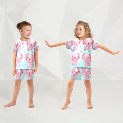 Pajama Sets Short Sleeve Axolotl Pink Soft Cotton Summer Sleepwear 2 Piece PJS Size 5-14T 5