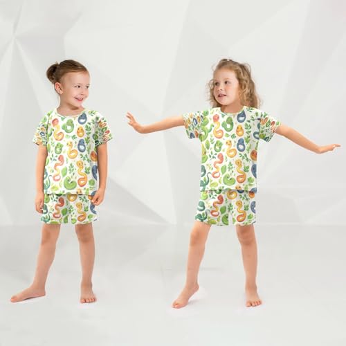 Pajama Sets Short Sleeve Cute Colorful Snake Pattern Soft Cotton Summer Sleepwear 2 Piece PJS Size 5-14T 5