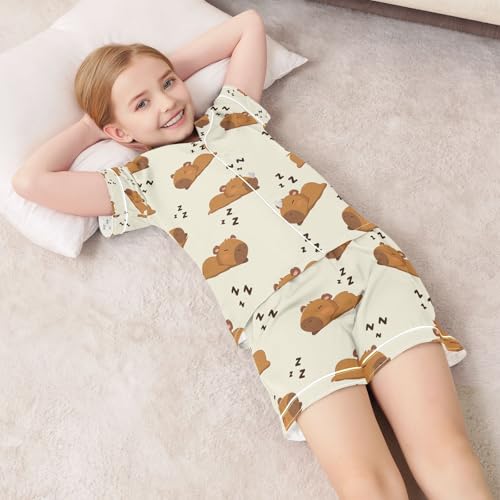 senya Sleep Funny Capybara A Satin Summer Pajama Sets Silk Short Sleeve Button Down Sleepwear 1