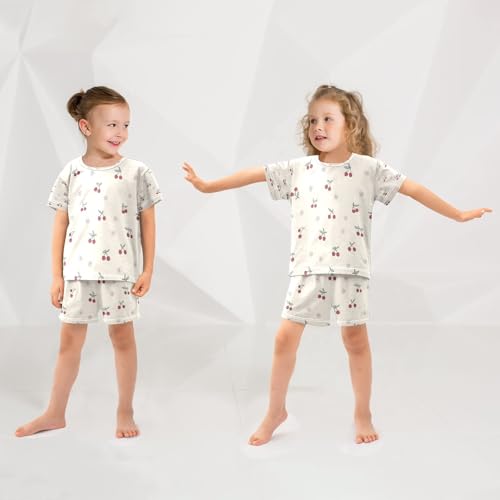 Cute Cherry Flower Pattern Kids Pjs Set Boys Girls Summer Short-Sleeve Sleepwear Pajamas 2PCS 4