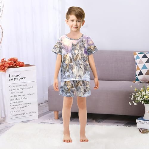 ALAZA Wolf Family Pajamas Set Short Sleeve Cotton Sleepwear Summer Pjs 2 Piece 5-14Y 6