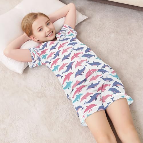 senya Fantastic Whale Satin Summer Pajama Sets Silk Short Sleeve Button Down Sleepwear 5