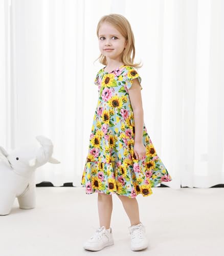 Sleeveless Twirl Dress for Toddler Girls–Soft Flutter Sleeve Dresses Summer Bamboo Viscose Skirt 2-5T 5