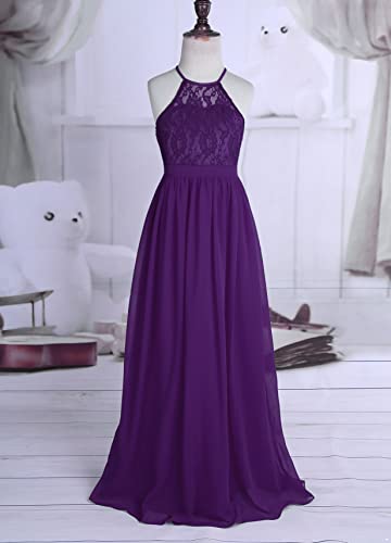 Sholeno Kids Princess Long Flower Girls Lace Dress Halter Neck Chiffon Formal Wedding Bridesmaid Party Gown Deep Purple 8 Years 4