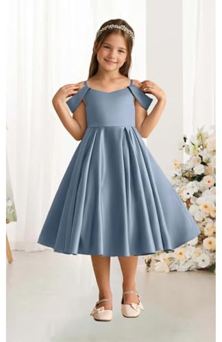 More information about Elegant Satin Flower Girl Dress with Spaghetti Straps Bow Knot Birthday Wedding Pageant Formal Midi Satin Dresses