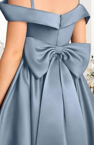 Elegant Satin Flower Girl Dress with Spaghetti Straps Bow Knot Birthday Wedding Pageant Formal Midi Satin Dresses 6