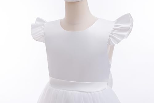• Style: Flutter sleeve, classic round neck and open back design, simple yet beautiful; Refined details elevate the design with elegance. The large satin bow on the back adds a touch of elegance and nobility to your princess. Wedding flower girl dress, boho girl dresses, open back tulle flower girl dress, communion dress, vintage flower girl dress, V back flower girl dress, tulle flower satin communion ball gown, toddler girl wedding dresses, tulle dress for girls, maxi dress for girls