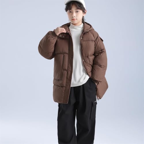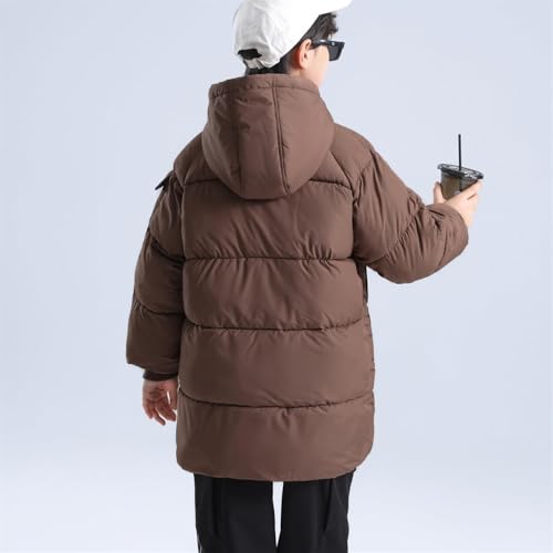 Kids Winter Coat Fleece Thermal Zip Up Hooded Heavyweight Girls Puffer Jacket Boys Fall Cuffed Sleeve Down Long Coats 6