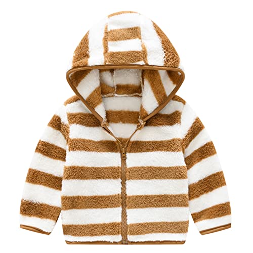 Toddler Boys Girls Thick Fleece Jacket Fashion Stripe Hooded Coat Soft Long Sleeve Windproof Outwear Sweaters Jackets 6