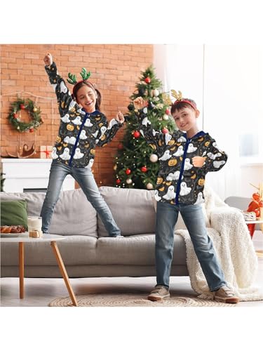 More information about Ghosts Pumpkins Cartoon Girls Fleece Jacket Girls Fall Jacket Boys Coats Zip Up Hoodie Children Outerwear 2-10T