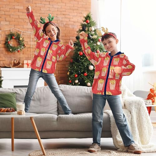 French Fries in Cups Toddler Fleece Jacket Girl Boys Hooded Fleece Jacket Coat Warm Outwear Zip-up 3-10T 4
