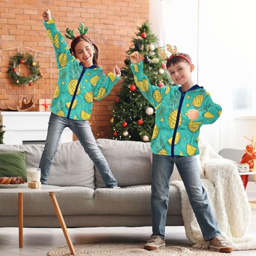 Summer Pineapple Slices Toddler Fleece Jacket Girl Boys Hooded Fleece Jacket Coat Warm Outwear Zip-up 3-10T 3