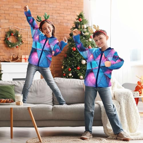 HOT ! Blue and Pink Abstract Triangles Toddler Fleece Jacket Girl Boys Hooded Fleece Jacket Coat Warm Outwear Zip-up 3-10T