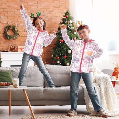 OTVEE Valentine Pink Purple Skulls Kids Hoodie Jacket Fall Spring Full Zip Warm Outwear Coat 6