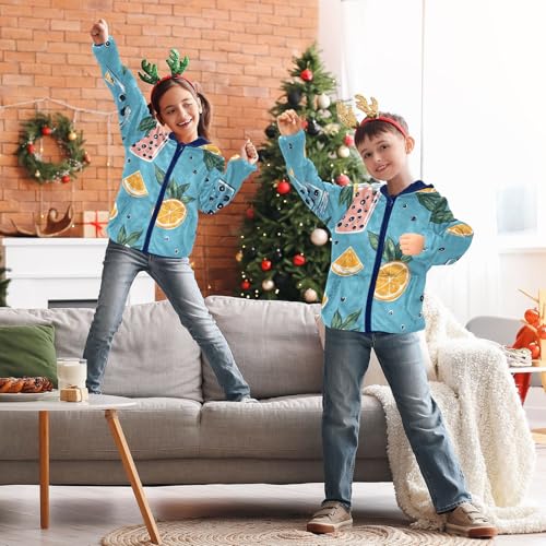 HOT ! Colorful Bubble Tea and Oranges Girls Fleece Jacket Girls Fall Jacket Girls Zip Up Hoodie Girls Sherpa Jacket 2-10T